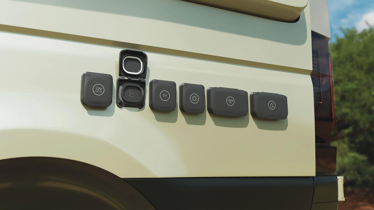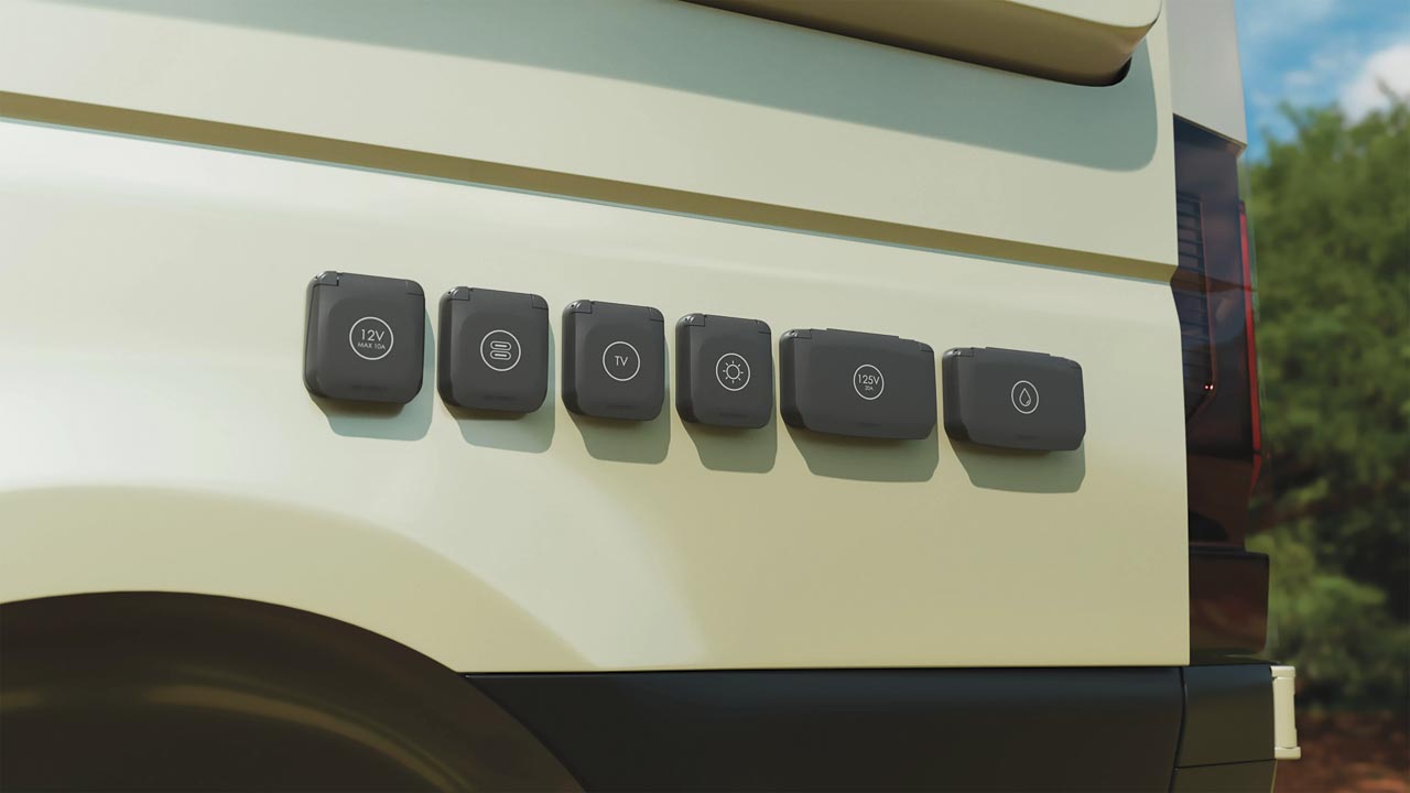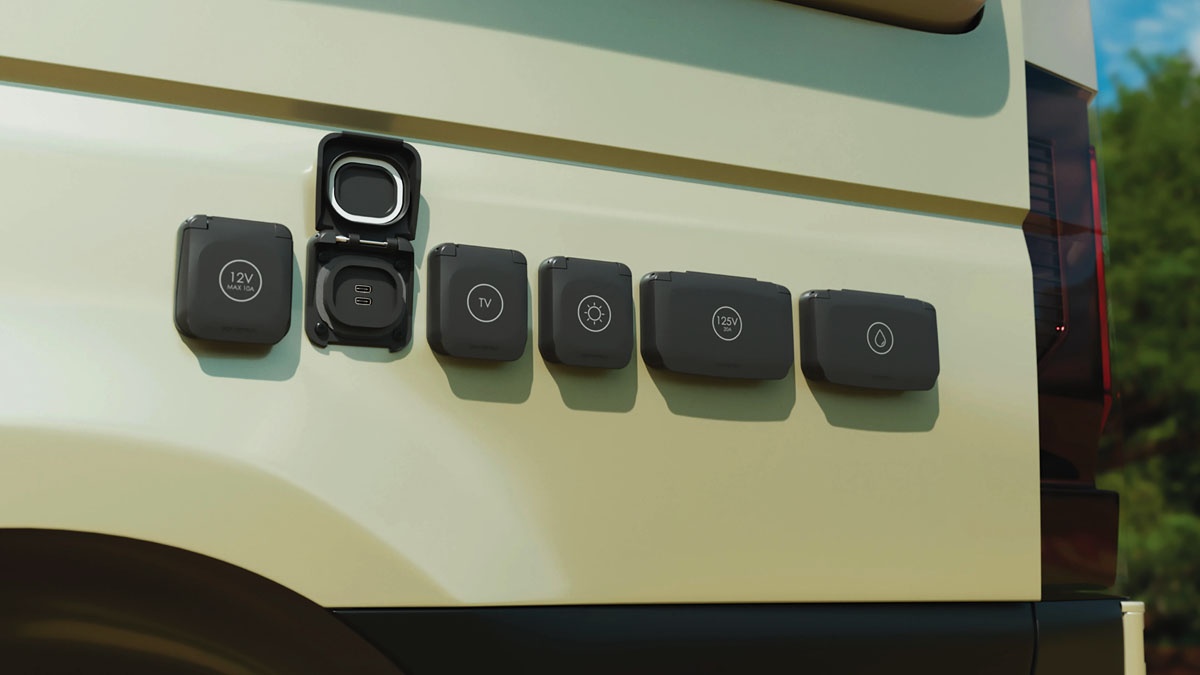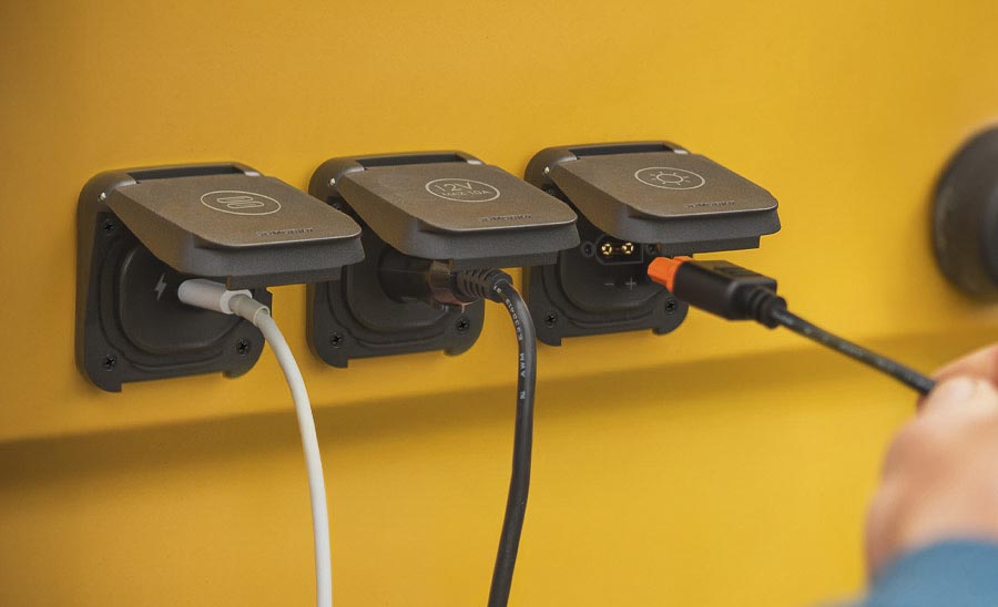 Ploché, robustní a voděodolné jsou nové karavanové zásuvky řady Ventura. Montují se na karoserii obytného vozu nebo karavanu a nabízí konektor pro externí solární panely, vodní rychlospojku, zásuvku na 12 V, dvojitou USB-C zásuvku i připojení pro anténu či satelit.